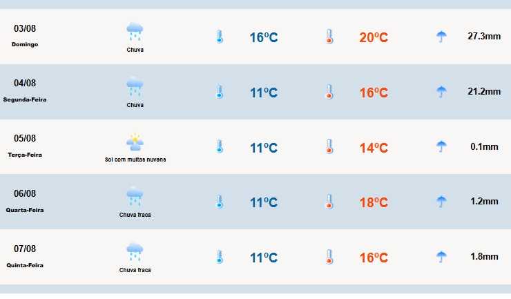 Em Cerro Largo a temperatura mínima será de 16°C e a máxima de 20°C.