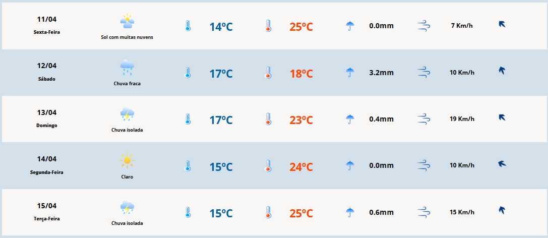 Em Cerro Largo a temperatura terá mínima de 14ºC e máxima de 25ºC.