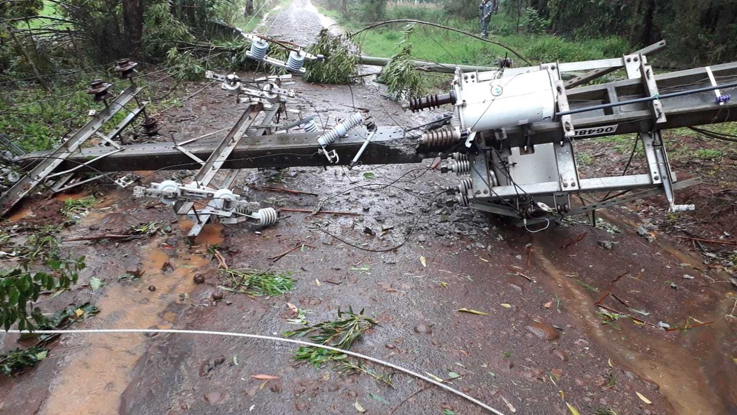 Um tornado atingiu o interior do Rolador, na região da Vista Alegre, divisa com o município de Caibaté, o qual também arrebentou cabos da rede elétrica da cooperativa.