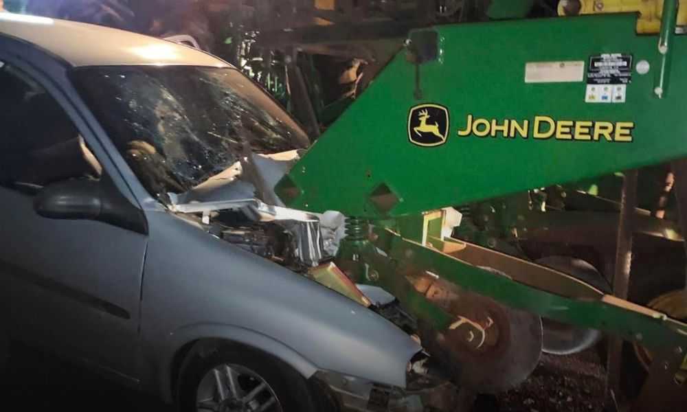 A colisão envolveu um automóvel e uma máquina agrícola, conforme informações do Corpo de Bombeiros Militar.