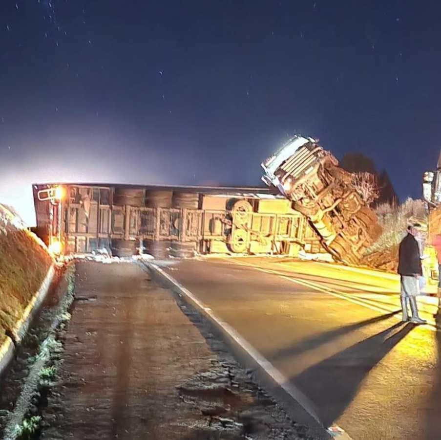 Uma carreta tombou no Km 370 da rodovia BR 285, no trecho entre Saldanha Marinho e Carazinho, na noite de quinta-feira (28/08).