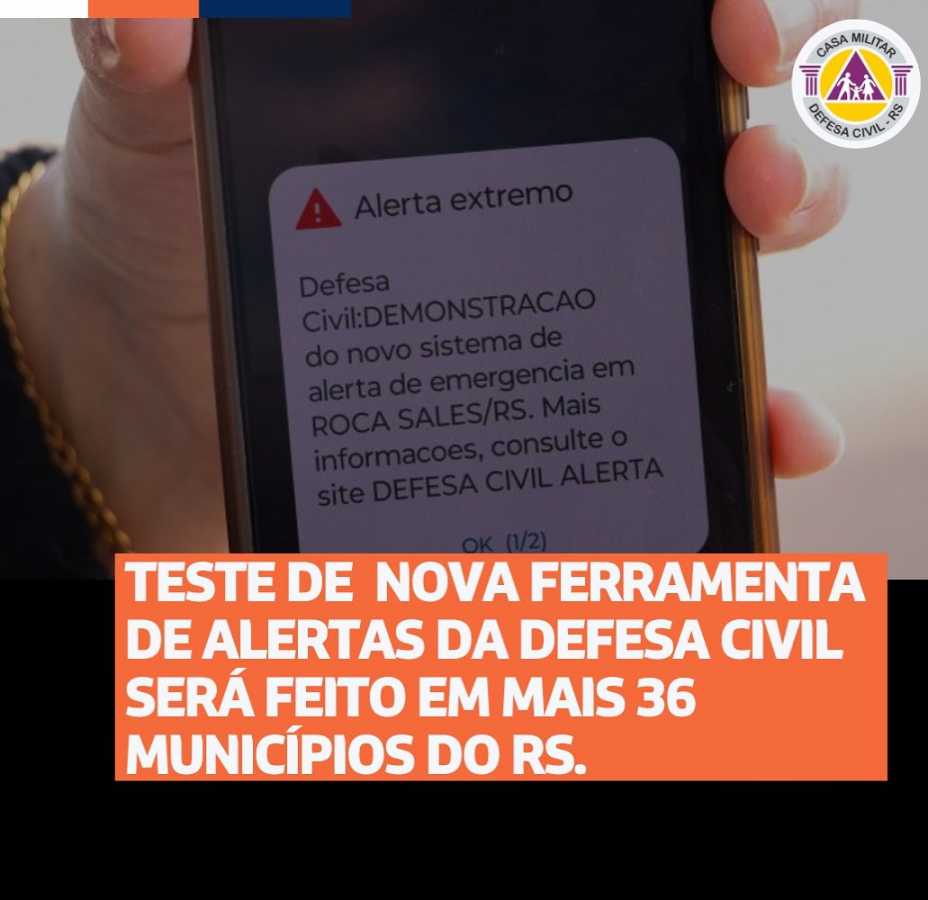 A partir de dezembro, a Defesa Civil do Rio Grande do Sul e de outros seis estados das regiões Sul e Sudeste poderão utilizar, em casos de desastres extremos, a ferramenta Defesa Civil Alerta utilizando-se a tecnologia cell broadcast, que encaminha alertas para celulares em áreas de risco.