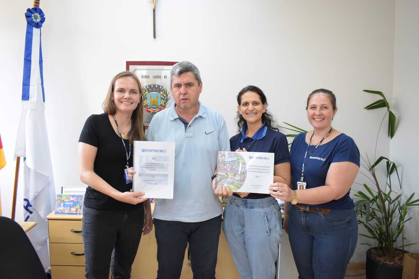 Em Cerro Largo, a parceria com a administração municipal é fundamental para a viabilidade das atividades, diante disso, a equipe do escritório municipal da Emater realizou a entrega do Relatório de Aters ao prefeito Paulo César Kipper de Almeida, no dia 19 de dezembro, assim como apresentou o Plano Operativo previsto para execução em 2024.