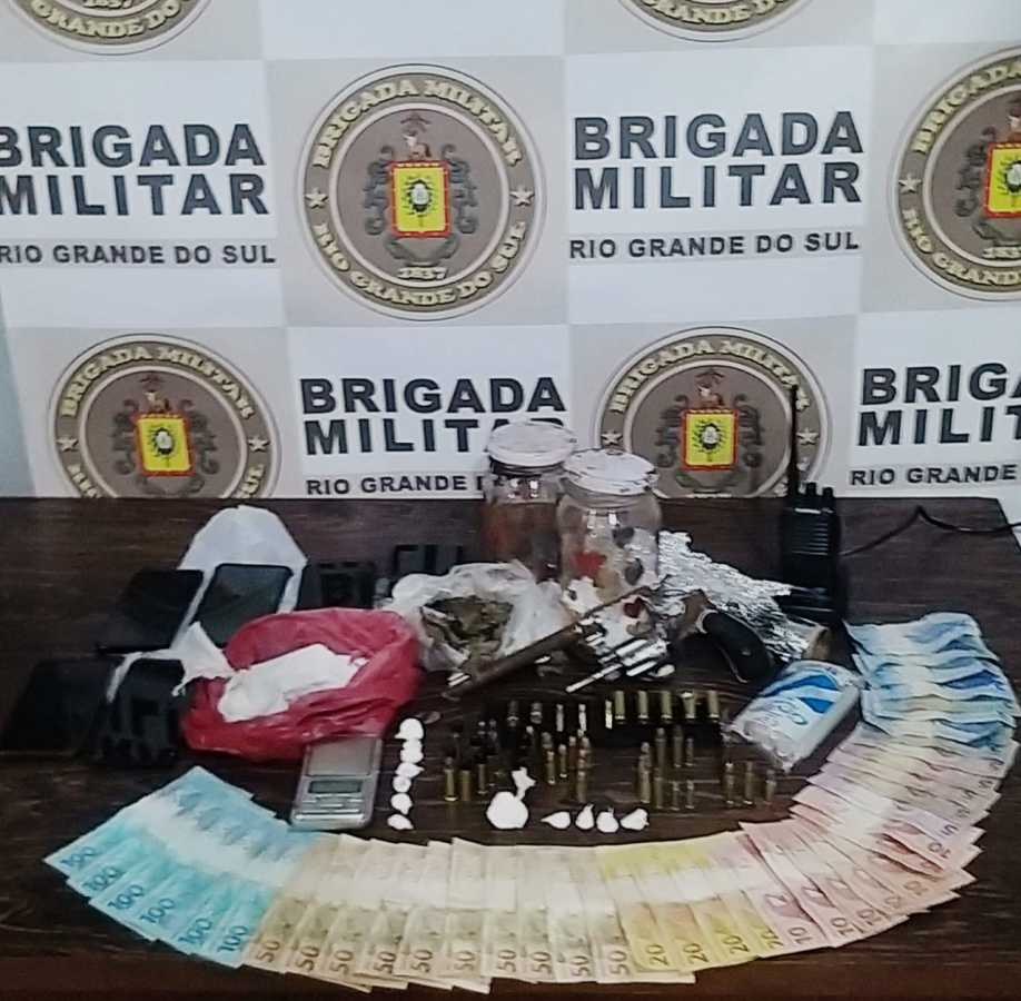 Também foram apreendidos 73g de maconha; 220g de cocaína (500 porções), um revólver calibre 38; 19 munições de calibre 38; seis cápsulas deflagradas de calibre 38; 16 munições calibre 9mm; três munições calibre 32; 10 munições calibre 22; um rádio HT; seis aparelhos celulares; uma balança de precisão e o valor de R$ 1.291,00.