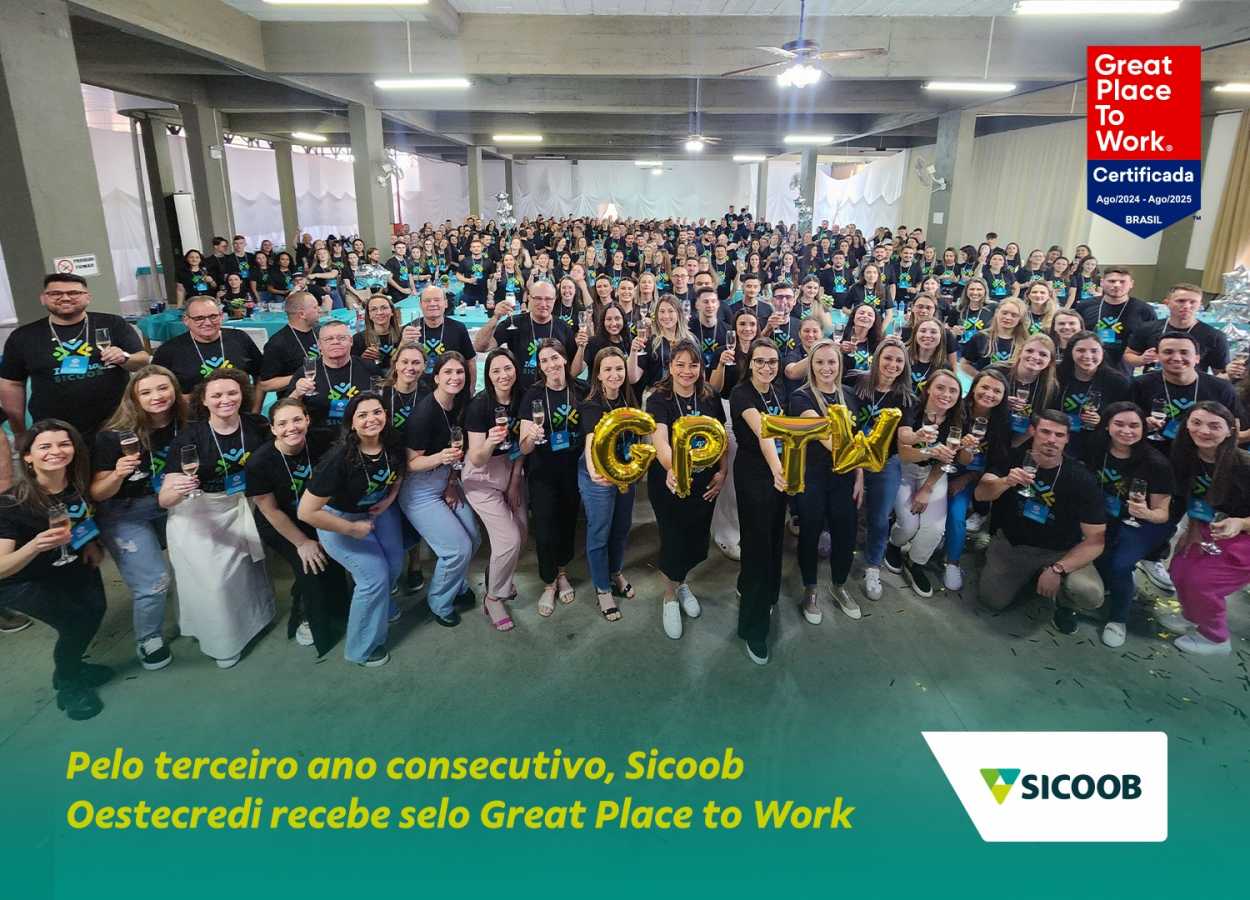 O Sicoob Oestecredi participou mais uma vez da pesquisa da consultoria Great Place to Work (GPTW). Pelo terceiro ano consecutivo, o Sicoob recebeu o selo que reconhece a cooperativa como uma das melhores empresas do país para trabalhar. A primeira participação aconteceu em 2021, quando a cooperativa também recebeu a premiação.