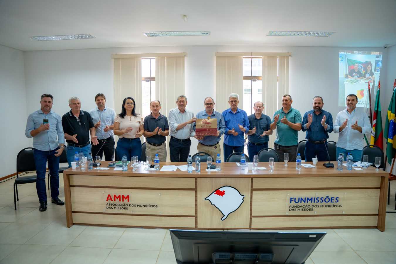 Com a presença de Prefeitos, Vice-prefeitos e Gestores de Turismo dos Municípios que integram a Associação dos Municípios das Missões (AMM), foi realizada na terça-feira (14/01), na sede da entidade em Cerro Largo, reunião para encerramento da gestão do diretor do Departamento de Turismo das Missões (Detur), o ex-prefeito de Caibaté, Amauri Pires da Silva.