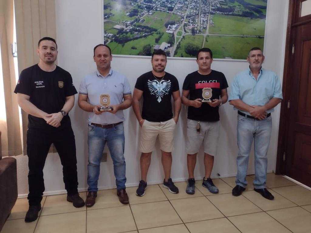 Ontem (31/1), a Polícia Civil, por intermédio do delegado regional Afonso Stangherlin, juntamente com o delegado Anderson Pettenon, titular da Delegacia de Polícia de Porto Xavier, realizou a entrega ao prefeito de Porto Xavier, Gilberto Menin, de um totem da Polícia Civil em reconhecimento ao apoio prestado à Delegacia local no ano de 2021.