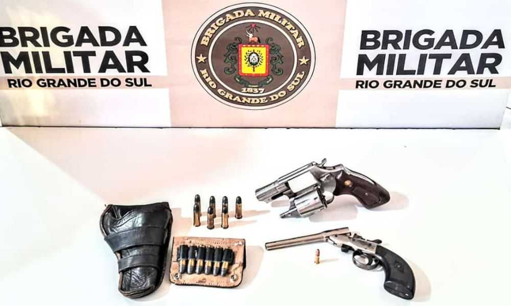 Durante a busca veicular foram localizados um revólver calibre 38 e uma garrucha calibre 22, mais 13 munições calibre 38, marca CBC, e uma munição calibre 22, sem marca definida, que foram apreendidas.