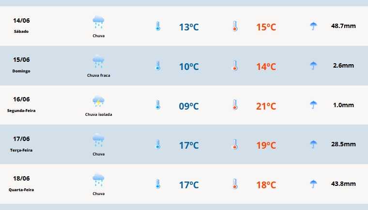Em Cerro Largo a temperatura oscilará entre 13°C e 15°C.