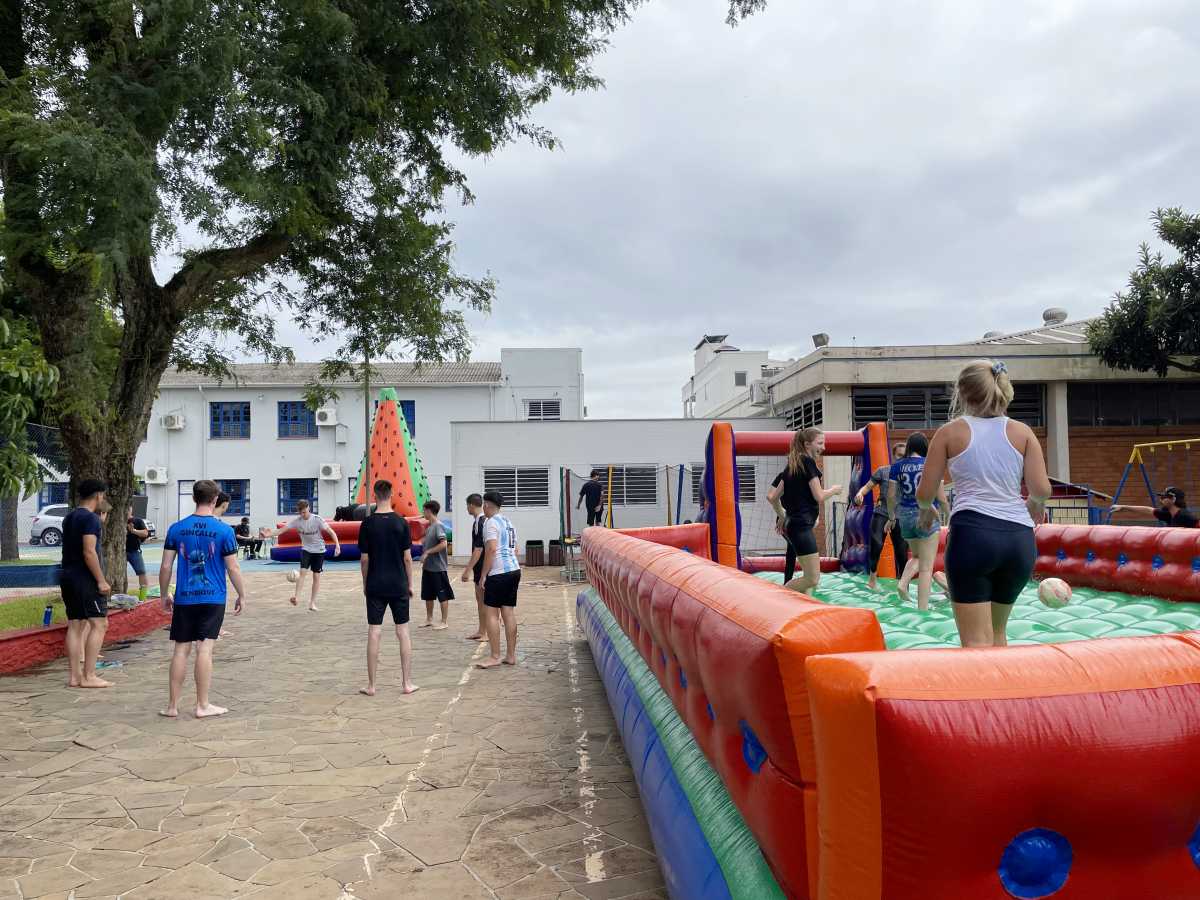 Além do carinho recebido dos colaboradores lassalistas, os estudantes ganharam presentes infláveis para escalar, deslizar, pular e se equilibrar. O futebol de sabão foi o preferido das turmas.