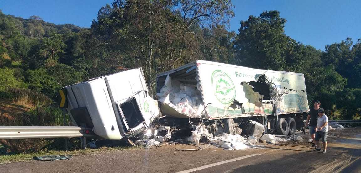 Dois caminhões se envolveram em um acidente de trânsito por volta das 7h20min desta quarta-feira (7/4), na BR-386, no município de Marques de Souza.