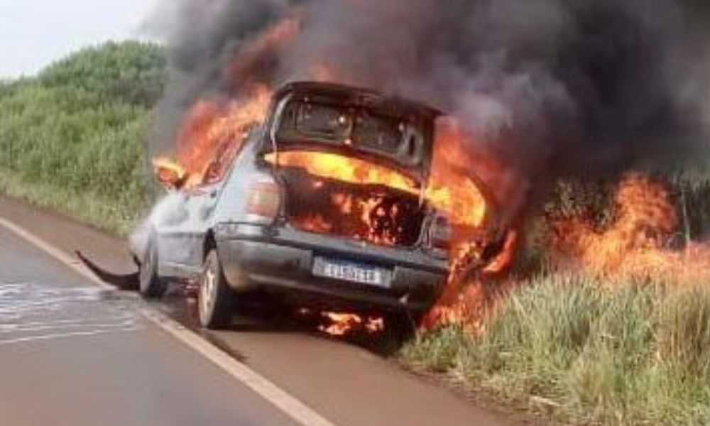 Após estacionar no acostamento, perceberam que as chamas já estavam intensas.
