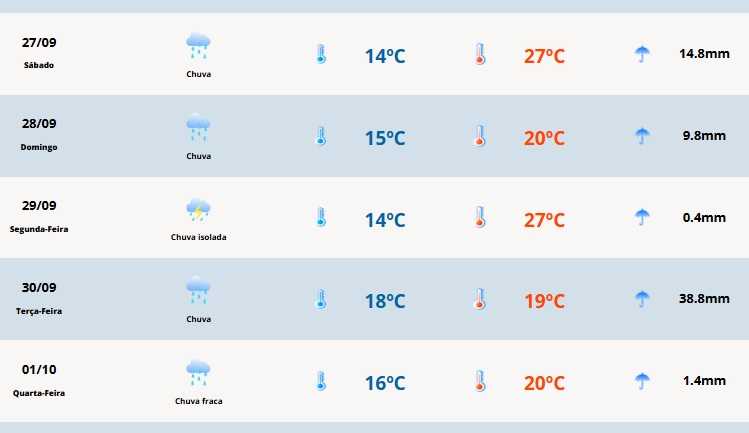Em Cerro Largo a temperatura vai oscilar entre 14°C e 27°C.