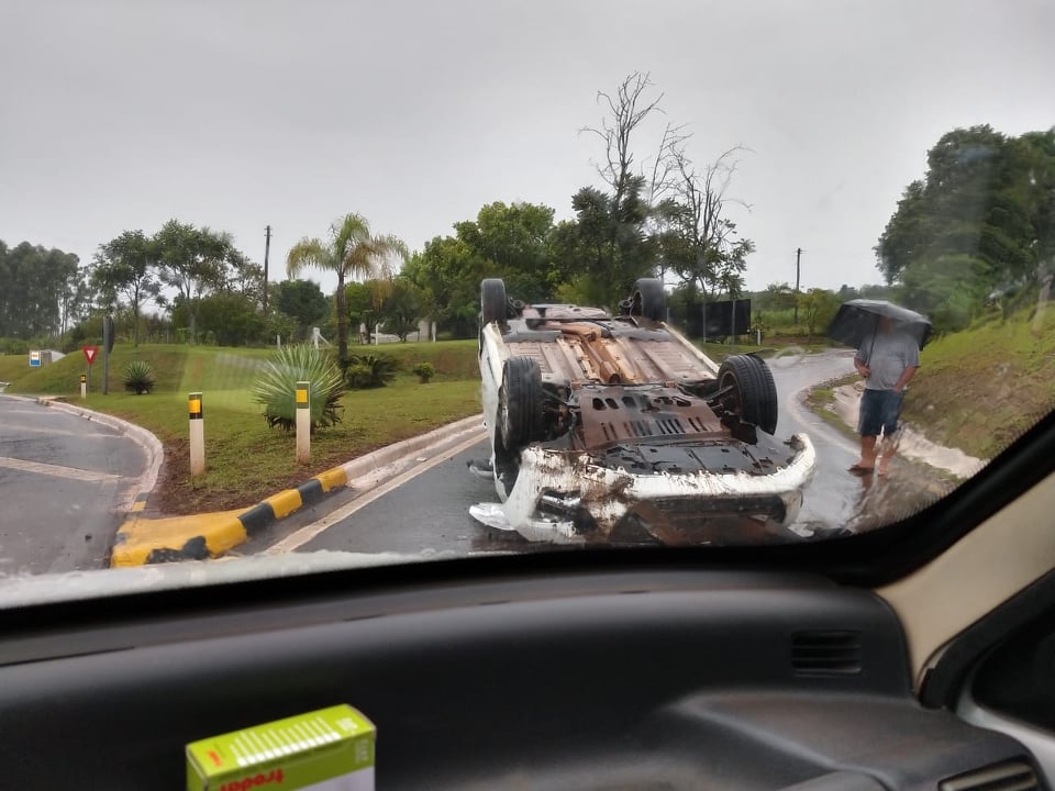 O motorista teria perdido o controle do veículo, em virtude de aquaplanagem, vindo a capotar na sequência.