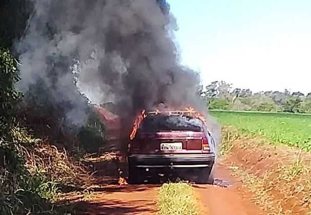 Foi encontrado há pouco um GM Kadett cor bordô/vinho, em chamas, abandonado no travessão da Linha Dr. Pinto, interior de Guarani das Missões.