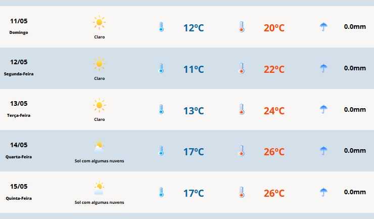 Cerro Largo terá temperatura mínima de 12ºC e máxima de 20ºC.