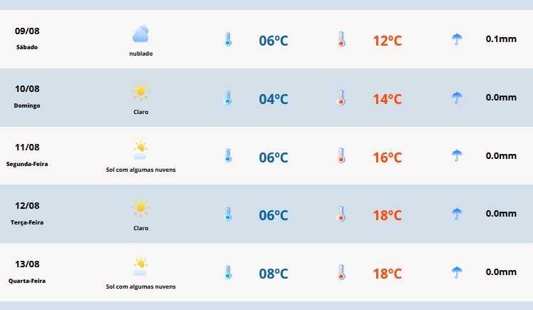 A chegada de uma massa de ar frio de origem polar traz um sábado (09/08) com temperaturas baixas em todo o Rio Grande do Sul. Muitas nuvens permanecem sobre a Metade Norte gaúcha, embora com aberturas em diferentes pontos. Já entre a Serra, os Vales, a Grande Porto Alegre e o Litoral Norte o tempo fica mais fechado e com maior nebulosidade.