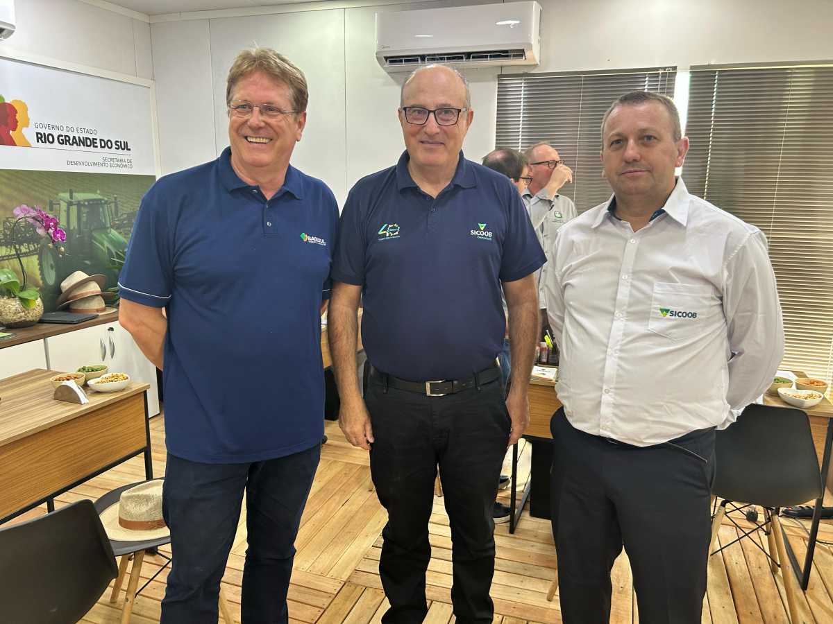 Durante a feira, eles mantiveram uma agenda de reuniões estratégicas com lideranças do setor, incluindo o diretor vice-presidente do Banco do Desenvolvimento do Rio Grande do Sul (Badesul), Flávio Luiz Lammel, o secretário de Estado do Desenvolvimento, Erni Polo, e o presidente do Sistema Ocergs, Darci Hartmann.