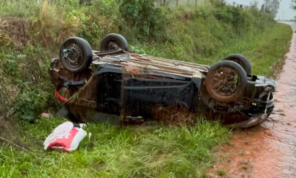 Veículo capota próximo ao aeroporto de Santo Ângelo