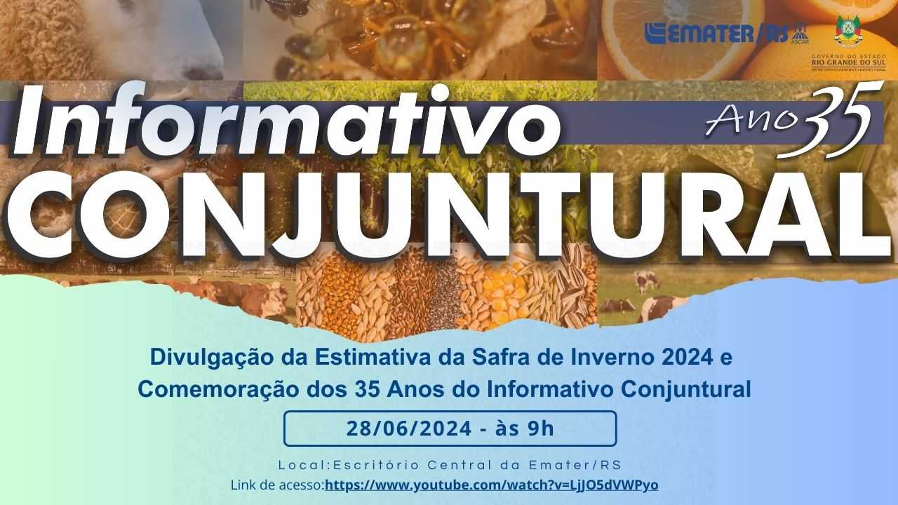 Publicado semanalmente desde 1989, de forma ininterrupta, o Informativo Conjuntural da Emater/RS-Ascar completou 35 anos nesta sexta-feira (21/06). O documento registra os dados conjunturais de produção, produtividade e preços das principais culturas da agricultura e da pecuária, relacionando-os com condições do clima e os contextos de formação de preços, comercialização e perspectivas de safra dos produtos agrícolas nas diferentes regiões produtoras do Rio Grande do Sul.