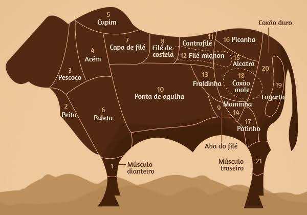 Tradicionalmente, o boi rende um total de 21 cortes.