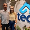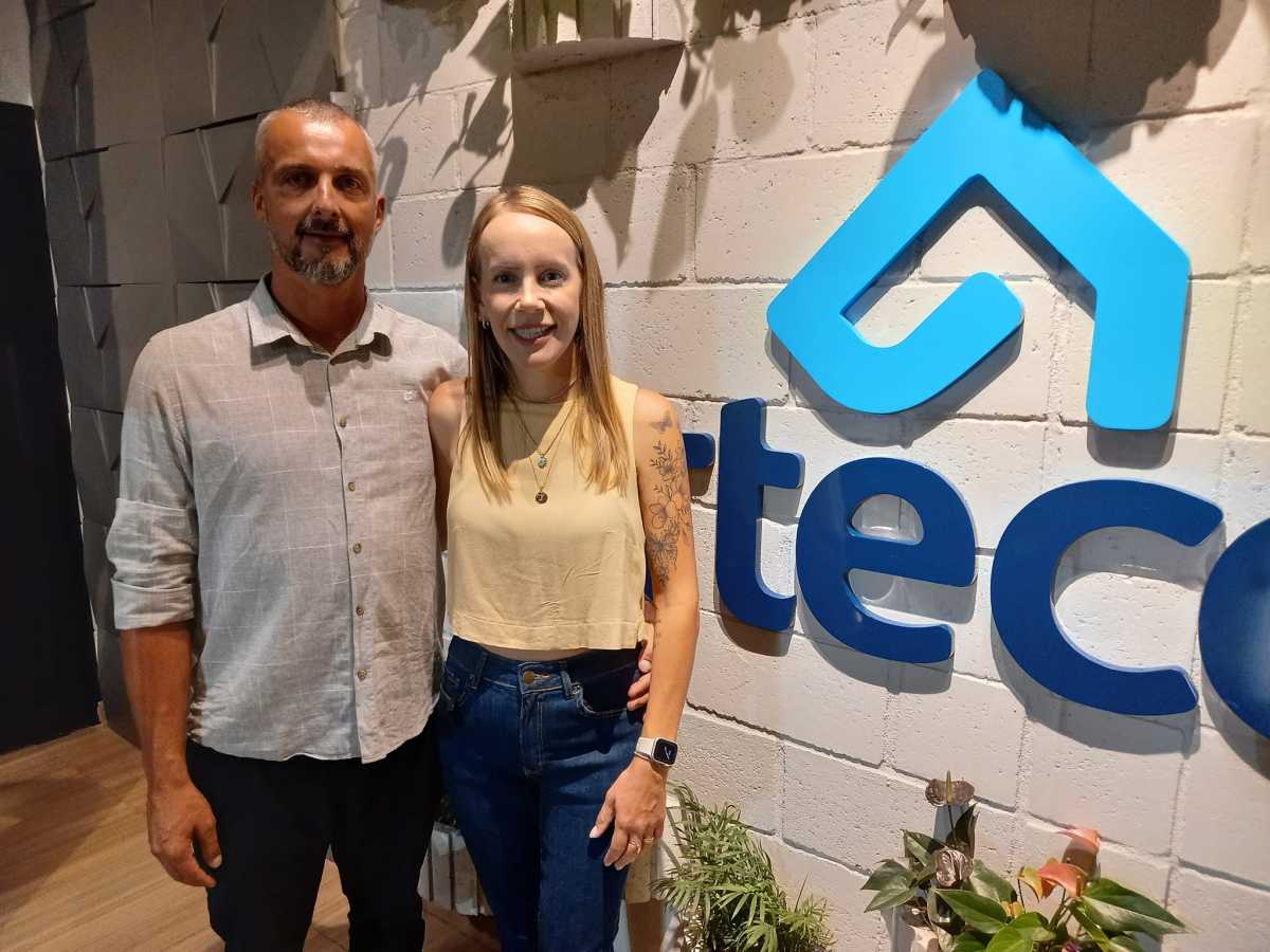 Os empresários Jéssica Bergmann e Roberto Cagliari recepcionaram autoridades, engenheiros, arquitetos, fornecedores e convidados, com um coquetel em frente ao setor administrativo da empresa.