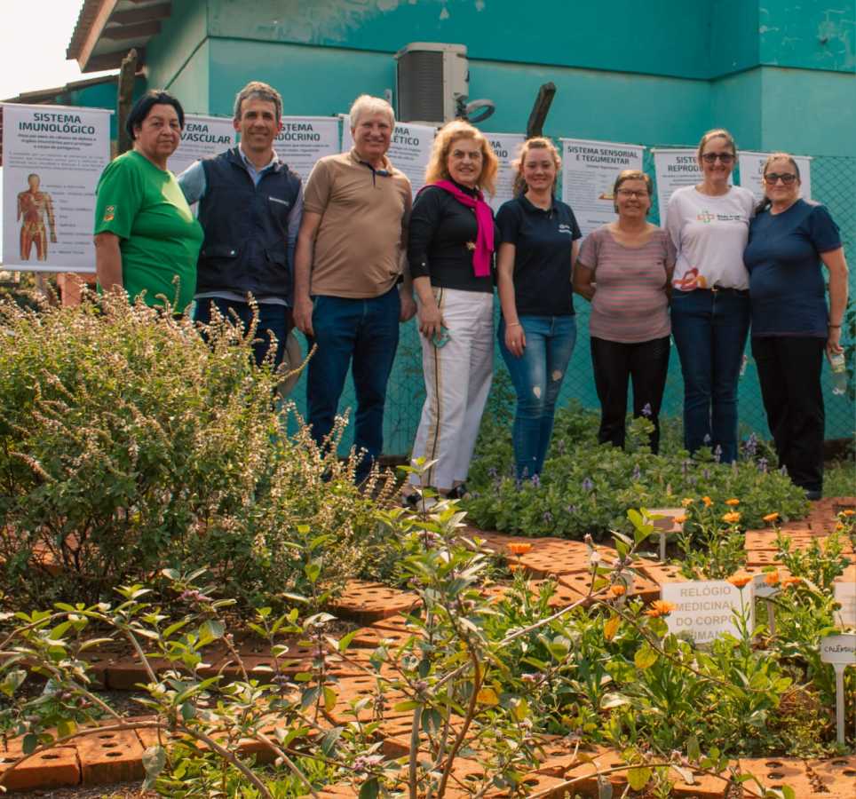 Em visita ao horto implantado ao lado da Unidade Básica de Saúde (UBS) ESF 1 do bairro São José, em Giruá, estudantes do 1º e 2º ano do Colégio Rui Barbosa tiveram a oportunidade de conhecer mais sobre a identificação e o uso de plantas medicinais na promoção da saúde. O horto em formato do relógio do corpo humano está inserido no Projeto Estadual Rede Bem Cuidar, sendo executado pela prefeitura e Emater/RS-Ascar. Também segue a proposta do Projeto de Horta Comunitária Orgânica Urbana que vem sendo implantado por diversas entidades parceiras em Giruá.