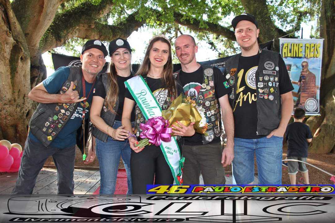 A presidente do Moto Grupo Rota 392, Aline Reis, 34 anos, foi eleita Rainha do Motociclismo Gaúcho, tendo como 1ª Princesa Luísa, de Charqueadas, e como 2ª Princesa Angelita, de Canoas, em concurso que contou com representantes de sete cidades.