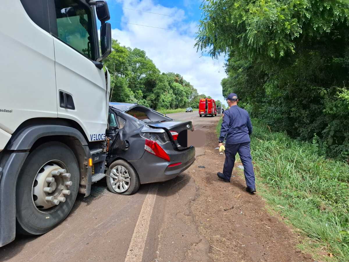 O sinistro ocorreu na rodovia BR 285, no trevo com a ERS 342, próximo ao Aruba, e envolveu uma carreta e um automóvel HB20 sedan, com placas de Porto Alegre.