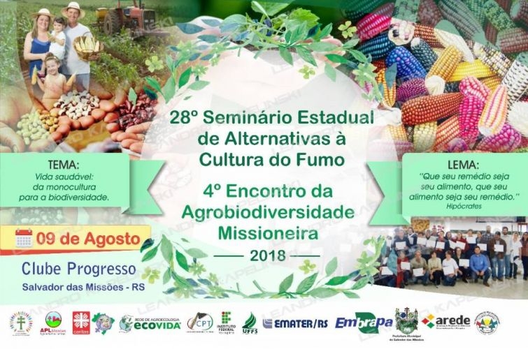 No próximo dia 9 de agosto, Salvador das Missões sediará o 28º Seminário Estadual de Alternativas à Cultura do Fumo e também o 4º Encontro da Agrobiodiversidade Missioneira.