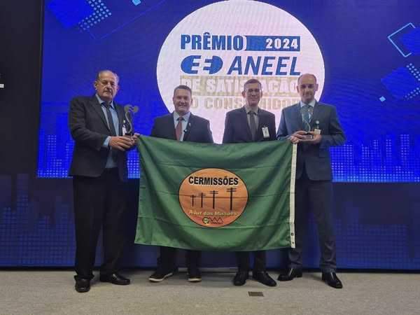 A Família Cermissões foi representada na solenidade pelo vice-presidente Diomedes Rech, acompanhado do assessor de comunicação Vanes Della Flora, do engenheiro eletricista Nerisom Rohleder e do coordenador do setor comercial Anderson Sá. Juntos, eles receberam troféu Campeão na categoria Permissionárias acima de 10 mil unidades consumidoras, reafirmando o compromisso da Cooperativa com a excelência no serviço de energia elétrica.