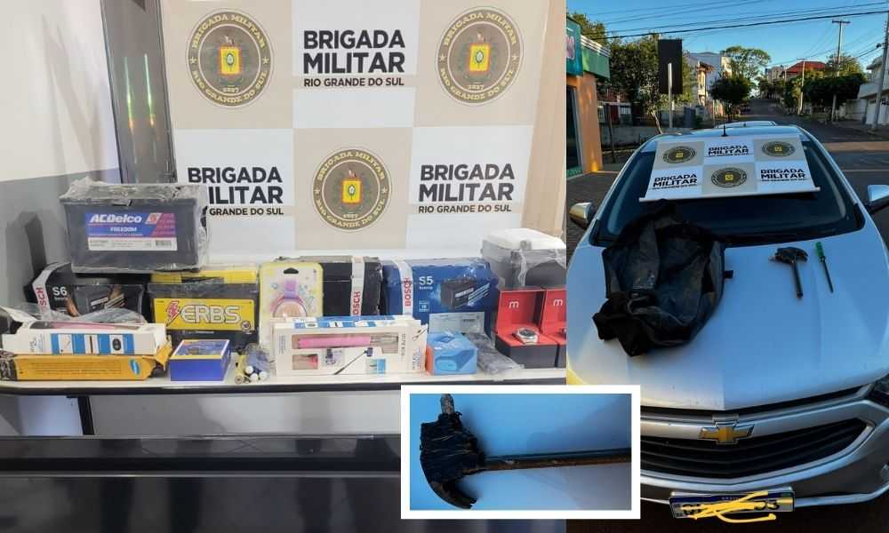 No veículo que ambos estavam, foram encontrados diversos objetos subtraídos das lojas arrombadas.