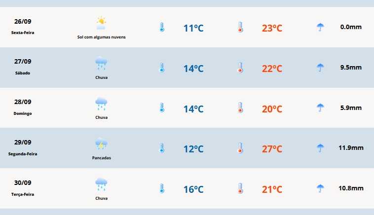A sexta-feira (26/09), também deve ter uma madrugada fria, mas de acordo com o prognóstico, a tendência geral é de que as mínimas sejam mais elevadas do que as registradas na quinta.
