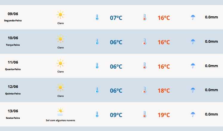O dia iniciará com mínimas por volta de 4°C em grande parte do Estado. Há chance de nevoeiros densos em diversas regiões entre a madrugada e o amanhecer. Na serra do Sudeste, a mínima irá baixar de zero.
