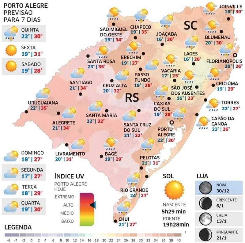 Há risco de temporais isolados novamente, especialmente no entorno da Lagoa dos Patos, Litoral, Grande Porto Alegre e Serra.
