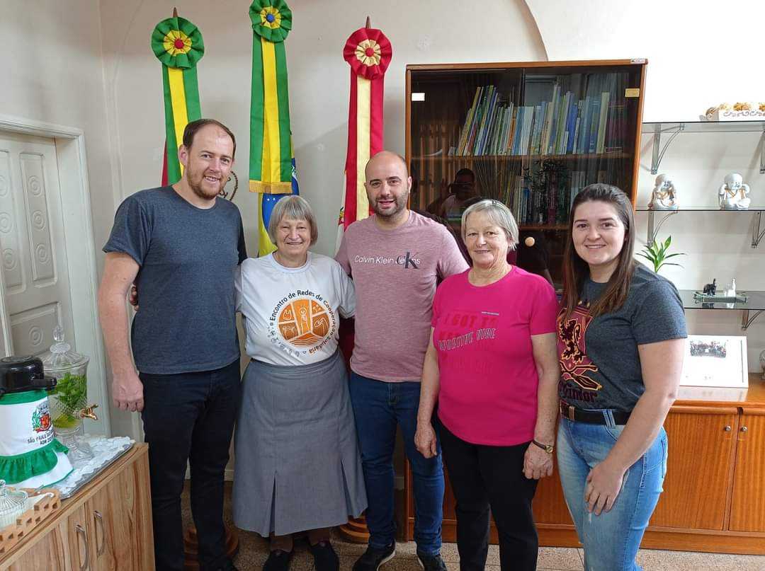 Na manhã de quarta-feira (23/08), o prefeito de São Paulo das Missões, Oberdan Luis Rhoden, recebeu em seu gabinete a paulistana que integra a Congregação Filhas do Amor Divino, irmã Lourdes Dill. Retornando ao Rio Grande do Sul para visitar seus parentes em São Paulo das Missões, sua terra natal, esteve visitando o Prefeito acompanhada da sua irmã Arlete Dill Rauber e do seu sobrinho Cleiton Rauber e esposa Daiane Krewer Oliveira.