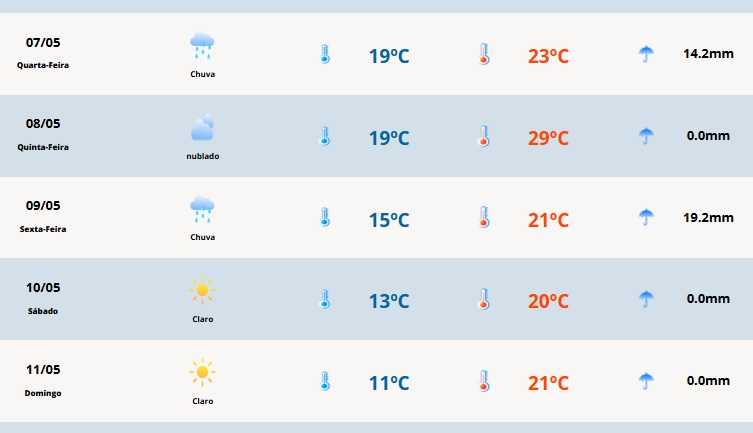 A temperatura em Cerro Largo será de mínima 19 graus e a máxima de 23 graus.