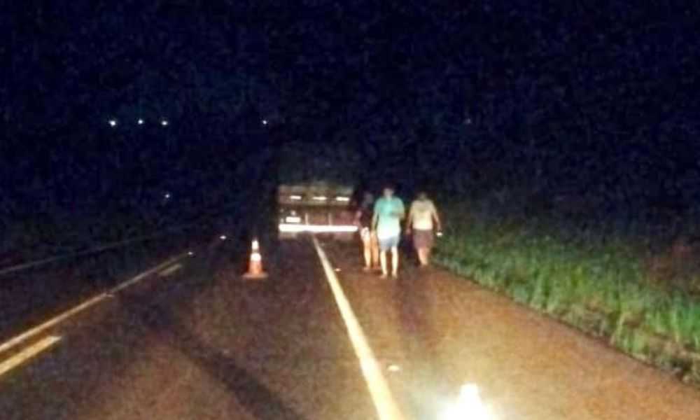 A colisão tipo traseira, fez com que um dos caminhões saísse da pista de rolamento, parando na vegetação ao lado da via.
