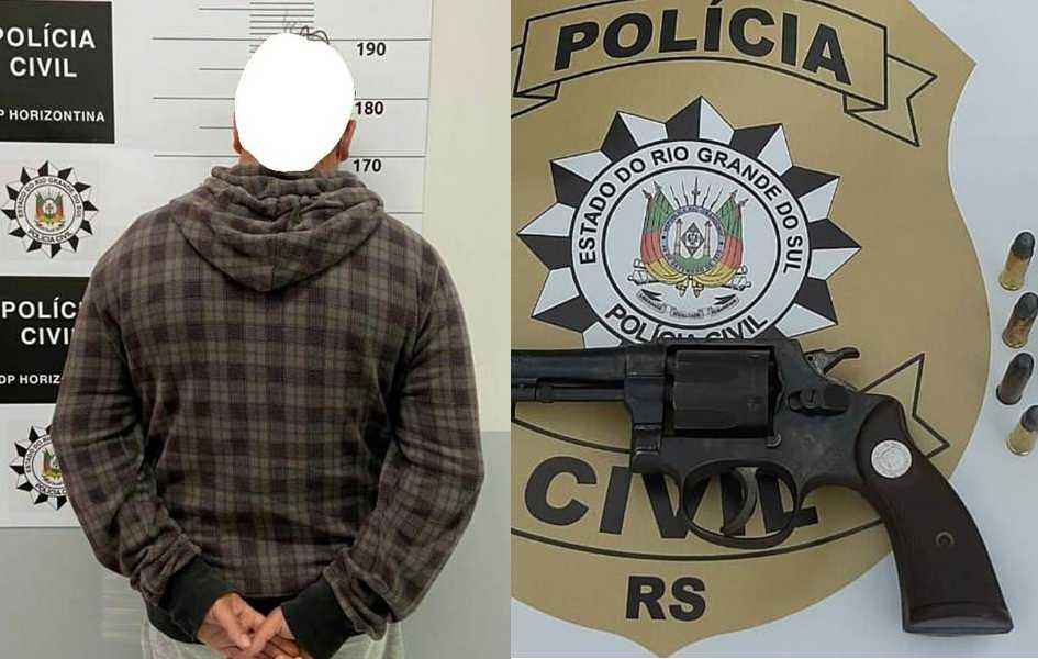 Acionada, a Polícia Civil diligenciou e o prendeu em flagrante, armado com um revólver calibre 32 e várias munições.