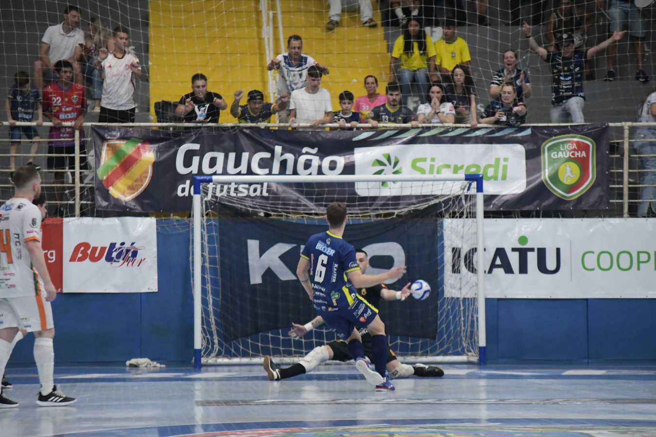 Não demorou muito para uma nova falta ser marcada para o time da casa e, recebendo novamente o passe, estava Giorgi, dessa vez pelo meio. Ele ajeitou com o pé e bateu em seguida, acertando a trave novamente! Mas nem tudo era chance para o Cerro. Aos 9min, o pivô Vini recebeu na referência e, mesmo de fora da área, conseguiu girar e bater firme, para uma grande defesa de Black, embaixo. Logo na sequência, Léo roubou bola na quadra de defesa do Cerro Largo e chutou a gol, para mais uma defesa de Black, desta vez em bola pelo alto.
