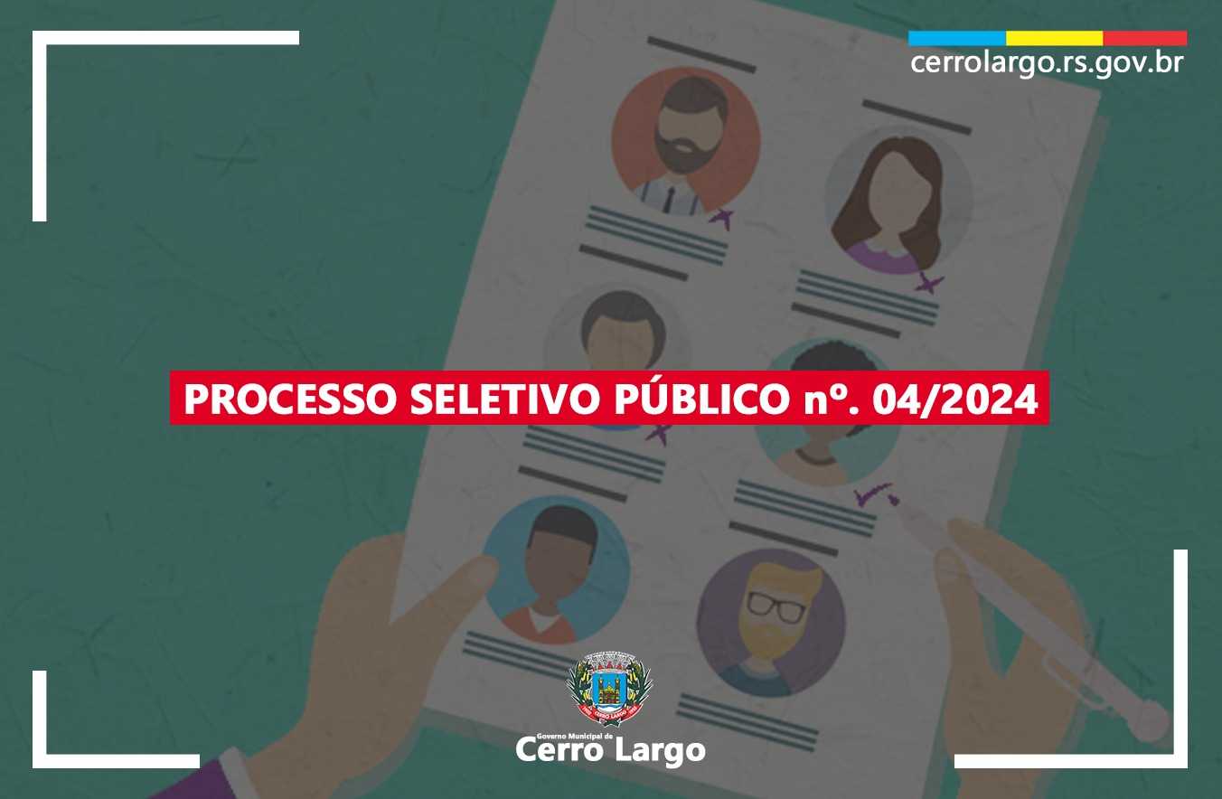 Mais informações poderão ser obtidas em se consultando o Edital de Processo Seletivo Público nº. 04/2024, disponível na Secretaria de Administração (na Prefeitura, endereço acima, ou pelo fone 55-3359.4900), no mural de publicações da Prefeitura de Cerro Largo/RS, ou no site www.cerrolargo.rs.gov.br