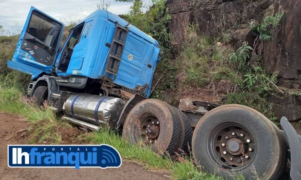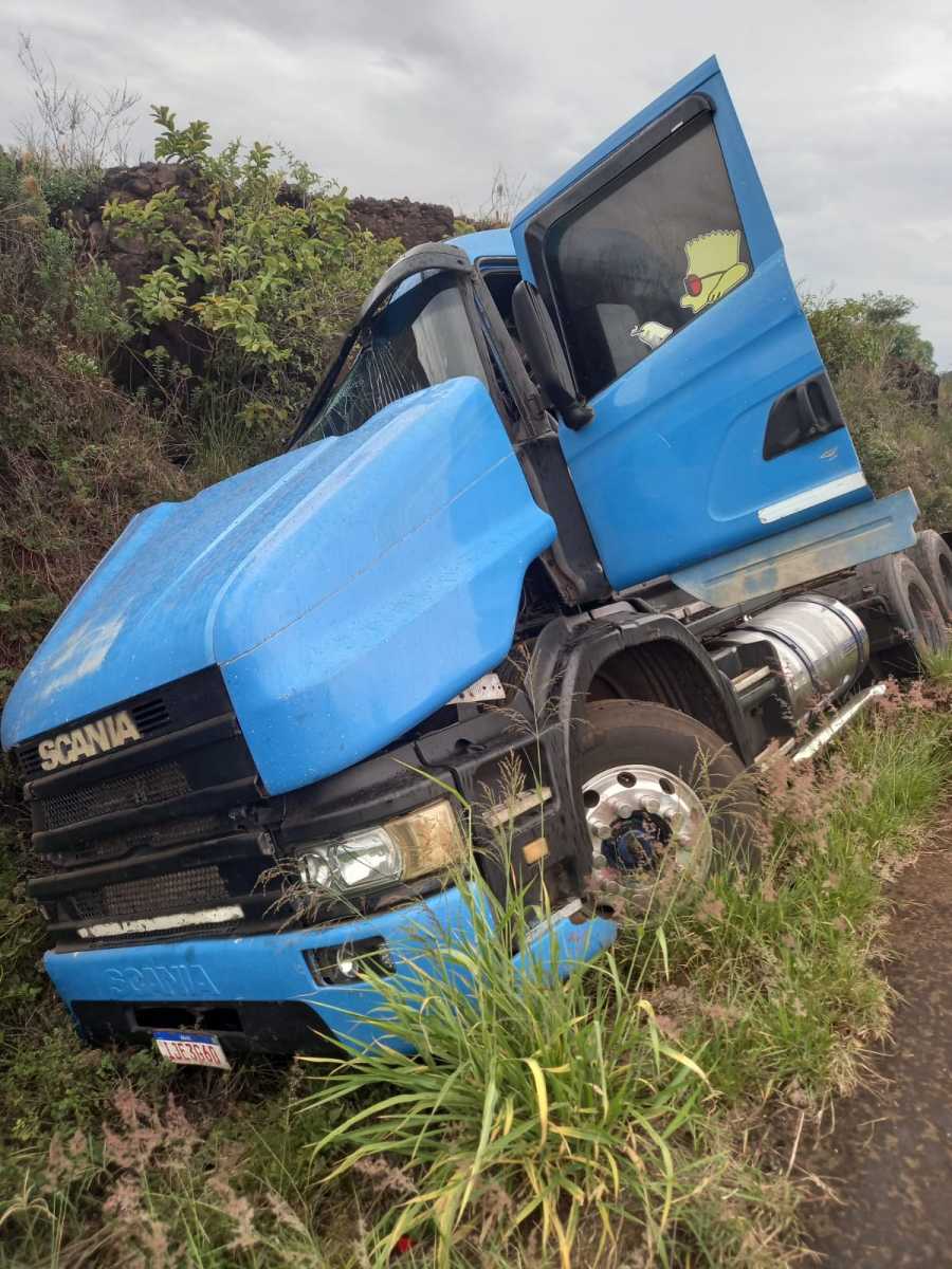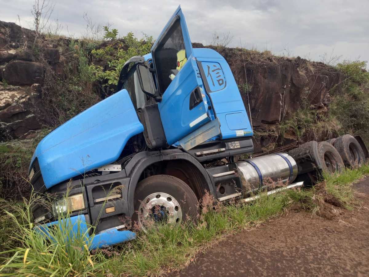 Um "cavalo mecânico" Scania, desengatado, acidentou-se na rodovia BR 392, em Cerro Largo.