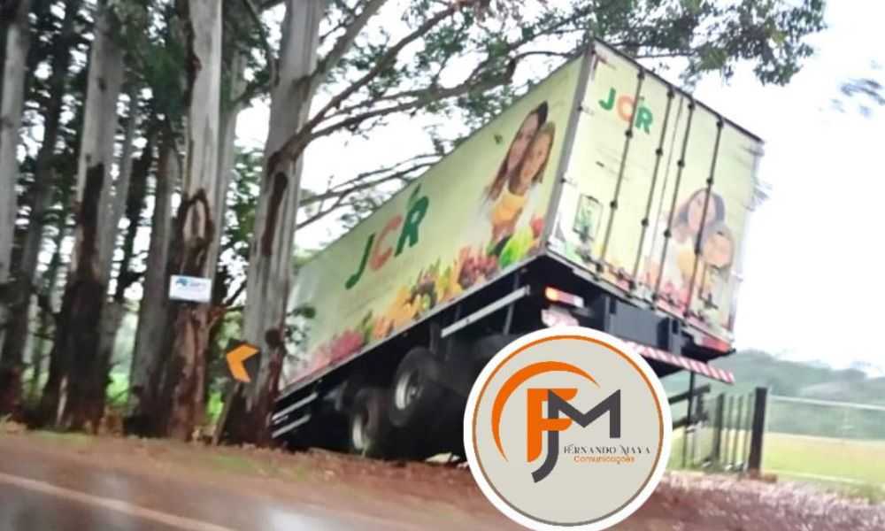 A saída de pista ocorreu por volta das 7h15min, após o condutor do caminhão perder o controle da direção, e sair da via, ficando com o caminhão suspenso entre a vegetação e os eucaliptos.