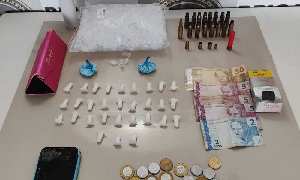 Em revista pessoal, foram encontrados vários pinos contendo substância semelhante à cocaína. Na residência mais pinos com cocaína foram localizados, além de munições de calibres restritos, dinheiro, um smartphone e material utilizado na traficância.