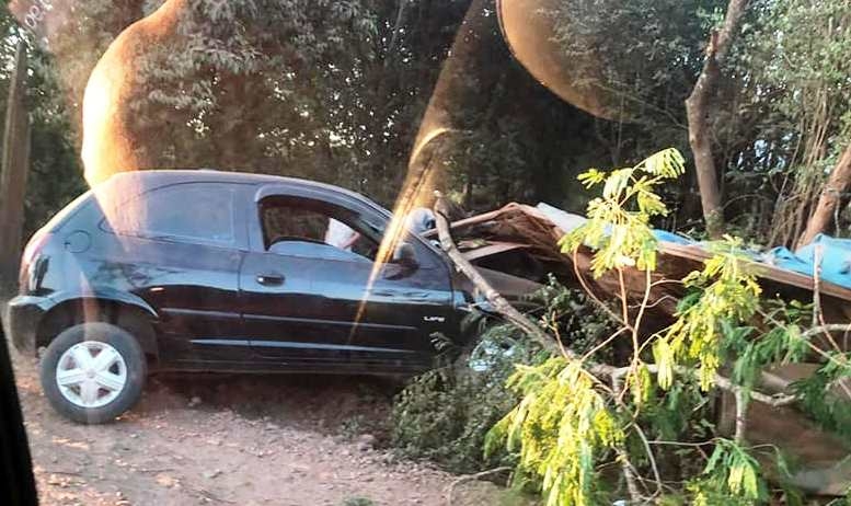 No final da tarde de ontem (8/3) um veículo Chevrolet Celta saiu da pista, bateu num portão e quase invadiu uma residência.