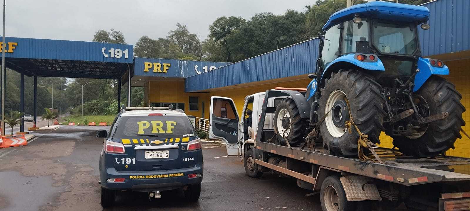 Na noite de domingo (16/6), a Polícia Rodoviária Federal apreendeu um trator de procedência estrangeira sem o respectivo desembaraço aduaneiro. O maquinário agrícola, fabricado na Turquia, ingressou no Brasil vindo do Uruguai e estava sendo transportado por um caminhão guincho na rodovia BR 158, em Cruz Alta.