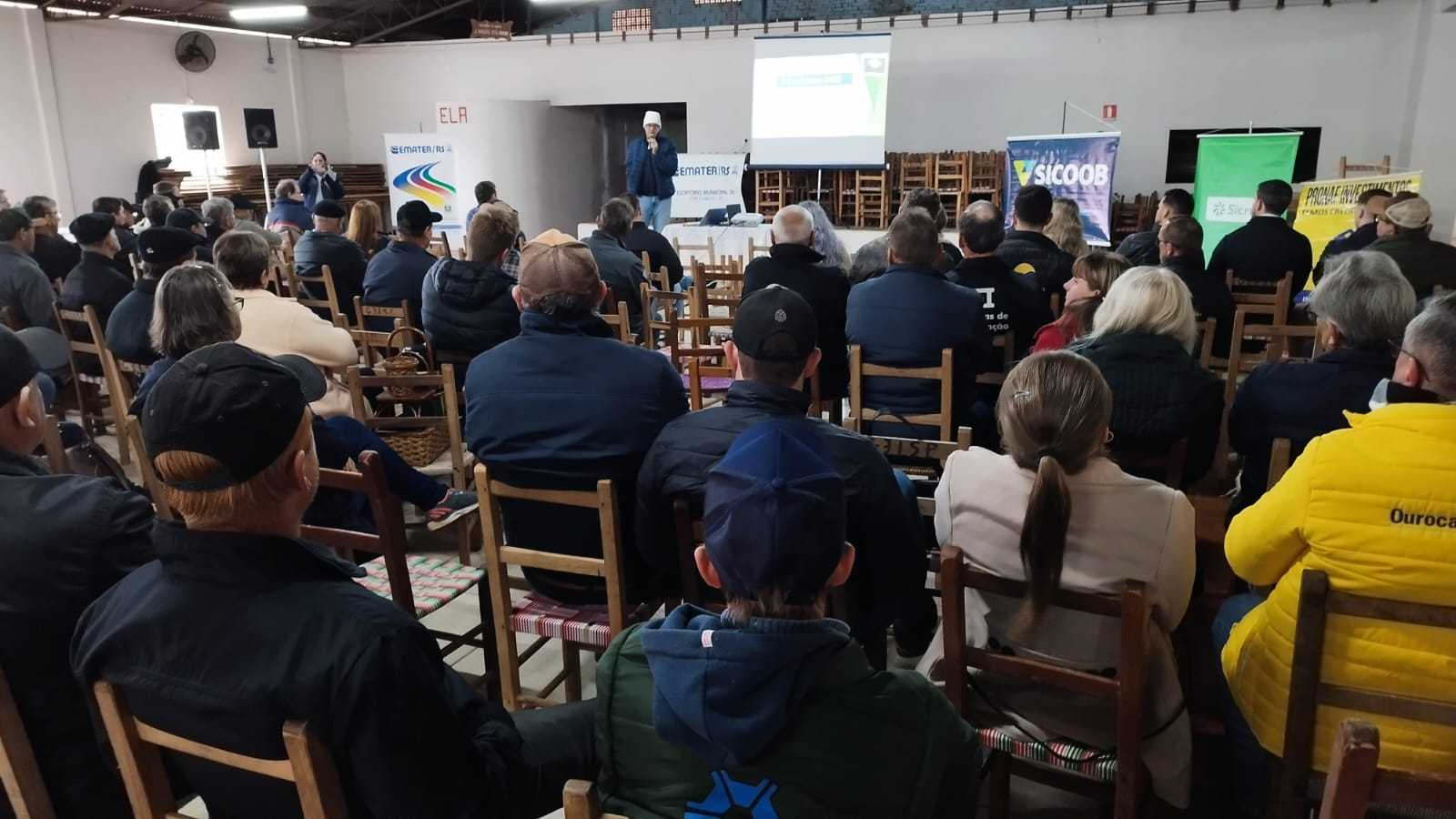 Dois temas fundamentais para a tomada de decisão na propriedade, o acesso ao crédito rural e as perspectivas climáticas estiveram presentes no encontro técnico promovido na quinta-feira (11/07), em Cerro Largo, junto ao clube da Esquina Sandri Moscon.