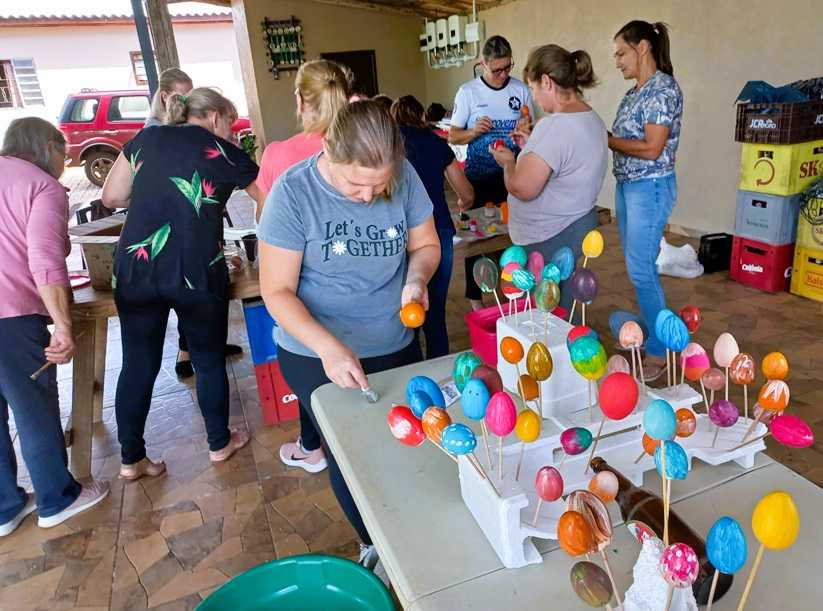 Em rodada de oficinas realizadas com os Clubes de Mães de São Paulo das Missões, a Emater/RS-Ascar, buscou apresentar propostas de artesanato que resgatam a tradição cultural da Páscoa na região. Para isso, foi realizada a pintura de cascas de ovos coletadas nas propriedades rurais.