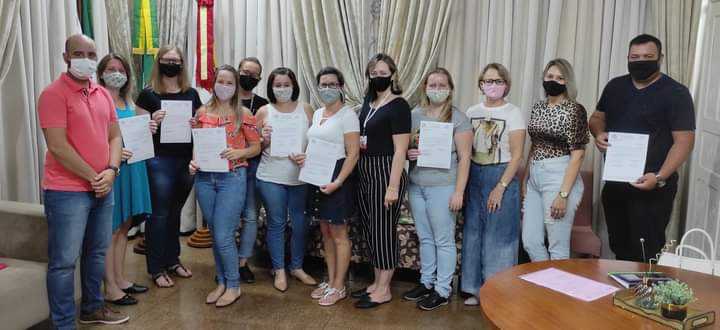 O ato solene aconteceu no gabinete do prefeito Oberdan Rhoden e contou com a presença da equipe da SMEC. Logo após aconteceu a primeira reunião presencial de diretores.