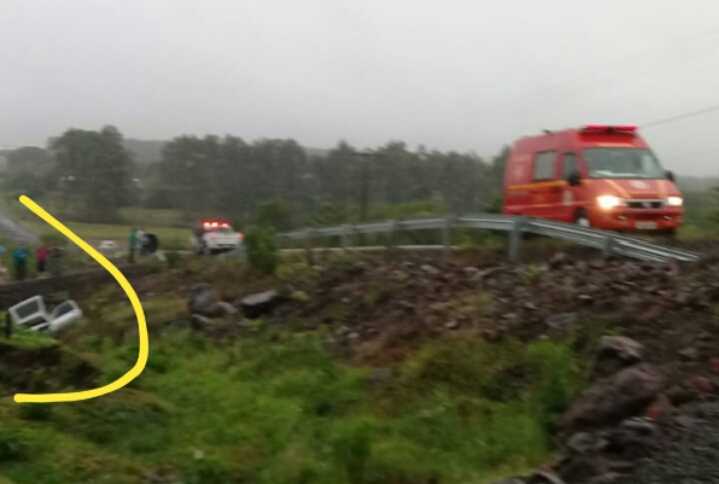 Em certa altura da rodovia, o motorista perdeu o controle do veículo após passar por cima de um cone de sinalização e saiu da pista, na altura da localidade de Linha Godói Centro (Cândido Godói).